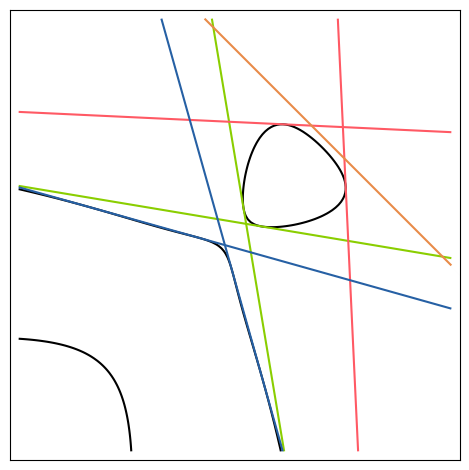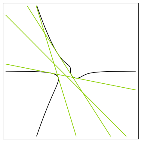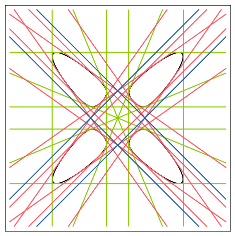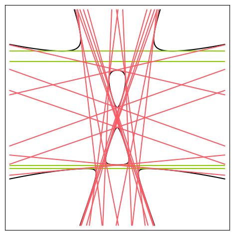 It is classical that a smooth plane quartic (in fact a general plane quartic) admits 28 bitangents, which are lines meeting the quartic at two points, each of order two. This is a classical question in enumerative algebraic geometry, and we can ask how it interacts with symmetries of quartics. Since a plane quartic is a canonical smooth curve of genus 3, its automorphism group lives in \(\text{PGL}_3(\mathbb{C})\) and therefore acts on the bitangents. There are 12 possible automorphism groups, and their action on the lines was worked out by me and Candace.